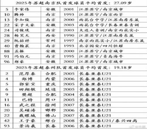也有网友比较了“苏超”南京队、泰州队的球员构成。