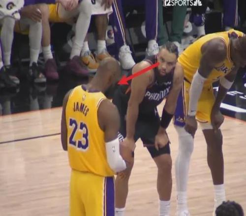 詹姆斯罚球期间狄龙主动上前击掌 被老詹无奈推开