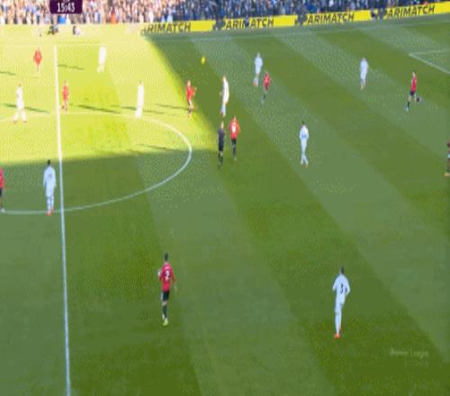 利兹联也可以抓住曼联经典的战术问题——两线之间的空当,然后制造出他们全场运动战环节的最好一次进攻: