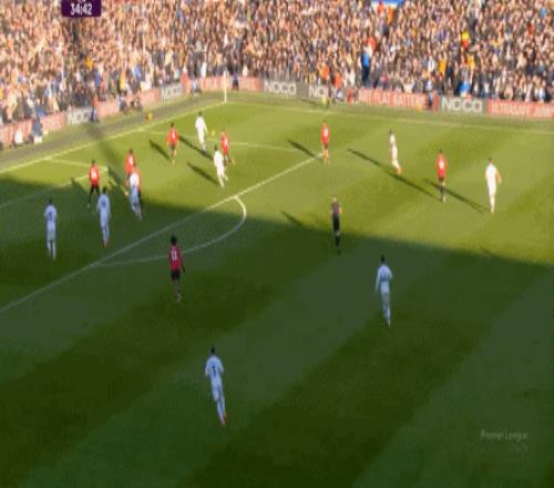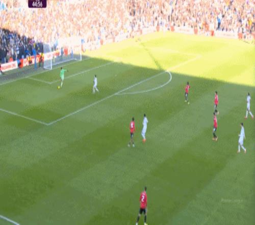 当曼联把机会出到库尼亚的脚下,因此击中球门之后: