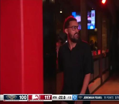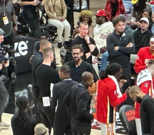 他还能保持足够的职业性,坐在独行侠的替补席,看一节比赛...