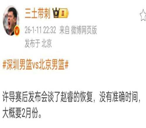 北京首钢遭遇到了赛季第一个两连败,赛后许利民可以说是暴怒,但没有说自己的问题。更糟糕的是,许利民透露了赵睿的伤病情况,表示他最快也要在2月份才能够回归,也就是说确定第一阶段报销,这已经是赵睿连续三个赛季遭遇伤病困扰,能否代表中国男篮参加世预赛还是未知数。